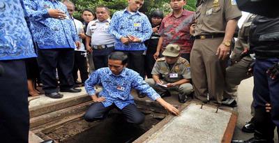 Gubernur DKI Jakarta, Joko Widodo, memeriksa gorong-gorong